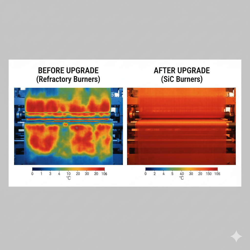 | Textile stenters/curing | Frequent cycling, uniformity | SSiC | Burner tiles, stabilizer rings | Even heat, fewer defects |
